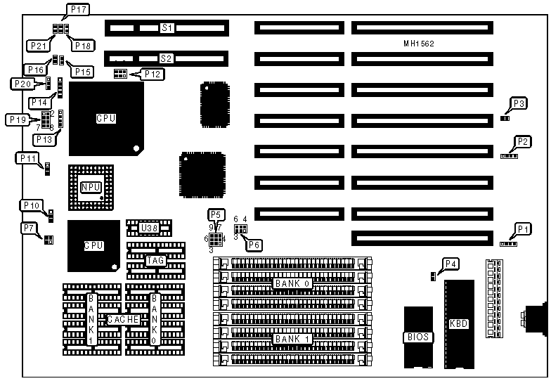 Note:The VESA slots are disabled (by P10) when using a 80386 or CX486DLC |