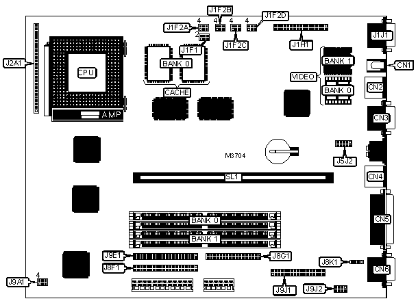 Note: Board accepts EDO memory. Board also accepts x 32 SIMMs. | ||