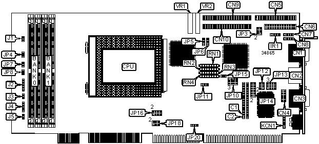 Note: Board accepts 1MB/2MB video memory. The location is unidentified.