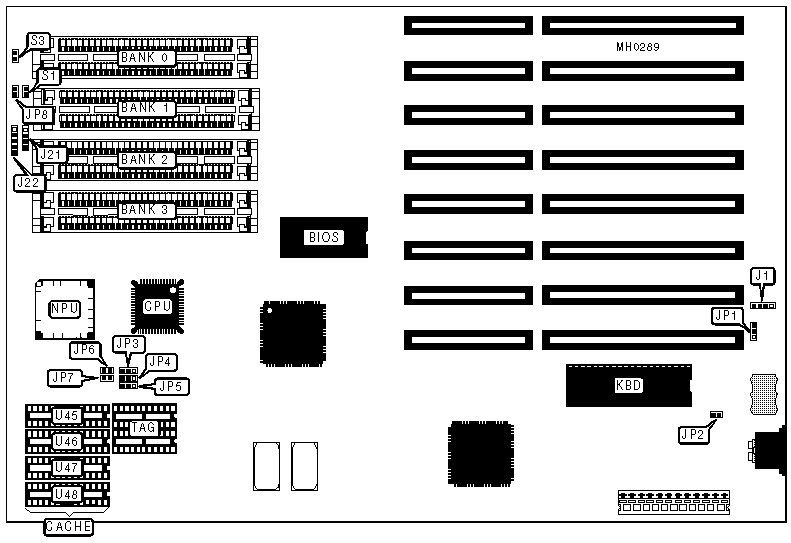 | CMOS memory clear | JP1 | pins 1 & 2 closed | |