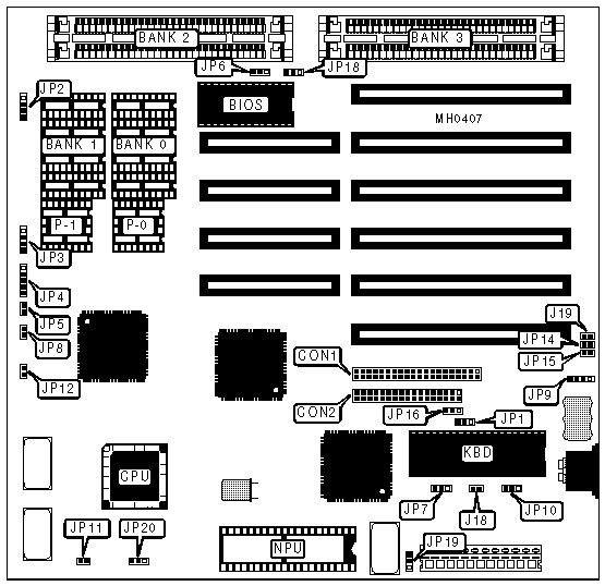 | Floppy drive interface | CON2 | Turbo LED | JP8 |