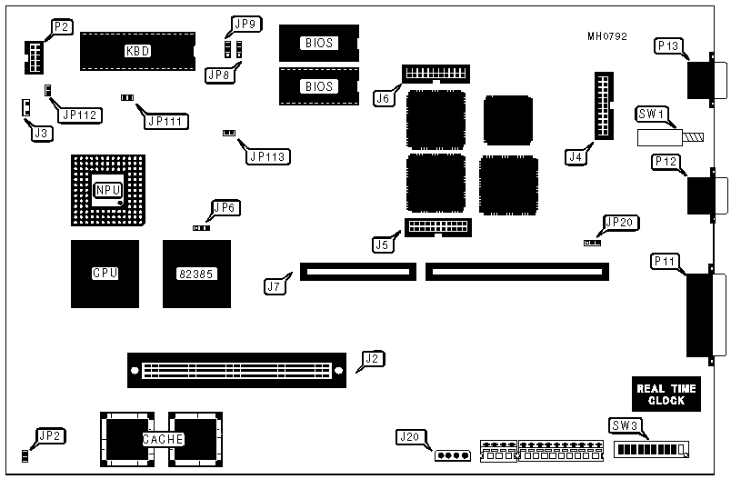 Keyboard/Bus mouse interface card socket, serial port, parallel port, VGA port, proprietary video card sockets, proprietary system memory card slot |