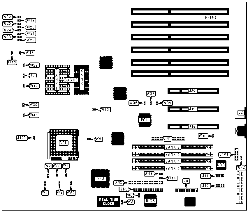 Floppy drive interface, IDE interface, PCI slots (3), parallel port, PS/2 mouse port,
