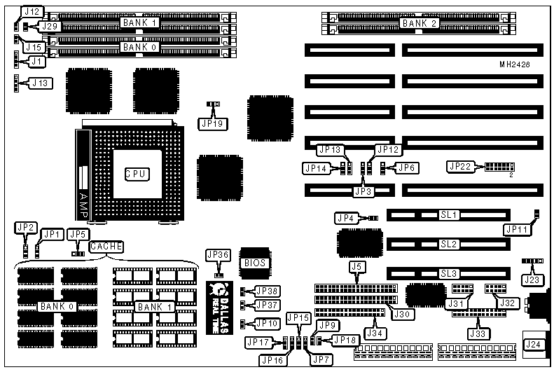 32-bit PCI slots (3), floppy drive interface, IDE interface (2), parallel port, PS/2 mouse port, serial ports (2) |