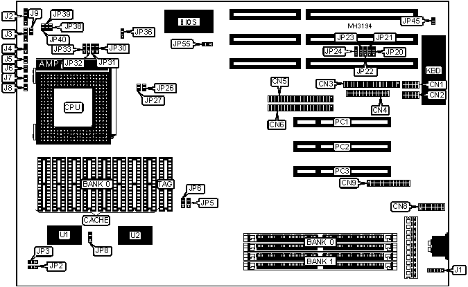Note: Board can be installed with either standard or burst cache. Both types cannot be present.