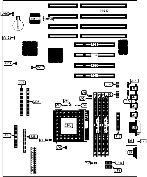 Note: Board accepts EDO memory. Board also accepts x 32 SIMMs. | ||