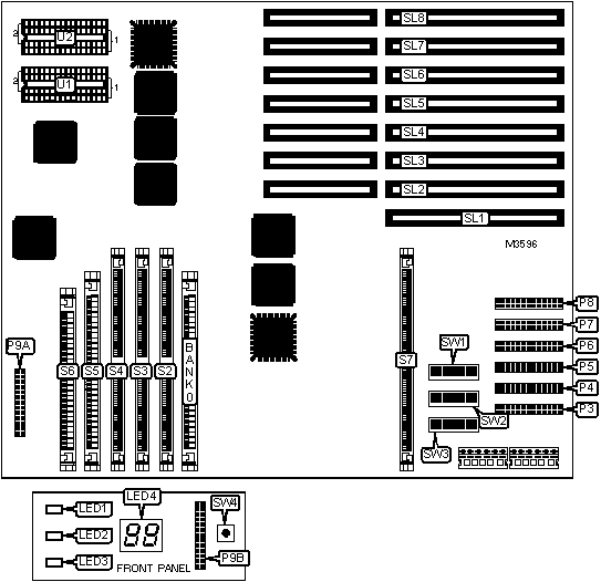 | Connector to front panel LEDs | P9A | Slot 5 - 16-bit ISA | SL5 |