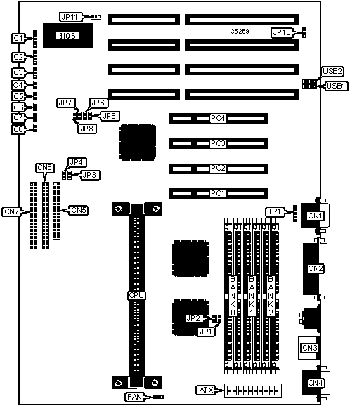 | CMOS memory clear | JP10 | Pins 2 & 3 closed | |