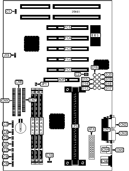 | CMOS memory clear | J19 | Pins 2 & 3 closed | |
