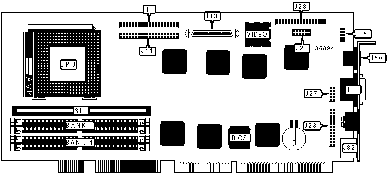 Note: The location of J1, J3, J17, J19, J20, J21, J24, J34 & J35 are unidentified. | |||
