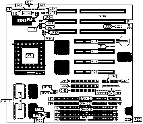 Note: Board accepts EDO memory. Do not populate banks 0 & 3 at the same time. | ||