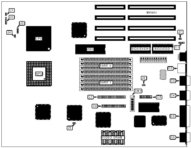 Floppy drive interface, IDE interface, parallel port, PS/2 bus mouse, serial port (2), VGA port, video feature interface connector