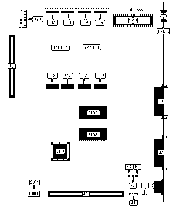 | Parallel port | J9 | 256KB module | J16 & J17 |