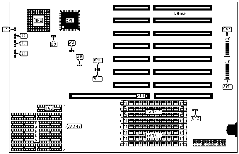 | » | BIOS type select 512KB | W9 | pins 1 & 2 closed |