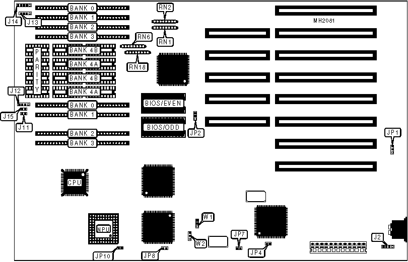 | 2MB | (2) 256K x 9 | (2) 256K x 9 | NONE | NONE | (4) 44256 | (4) 44256 | (4) 41256 |