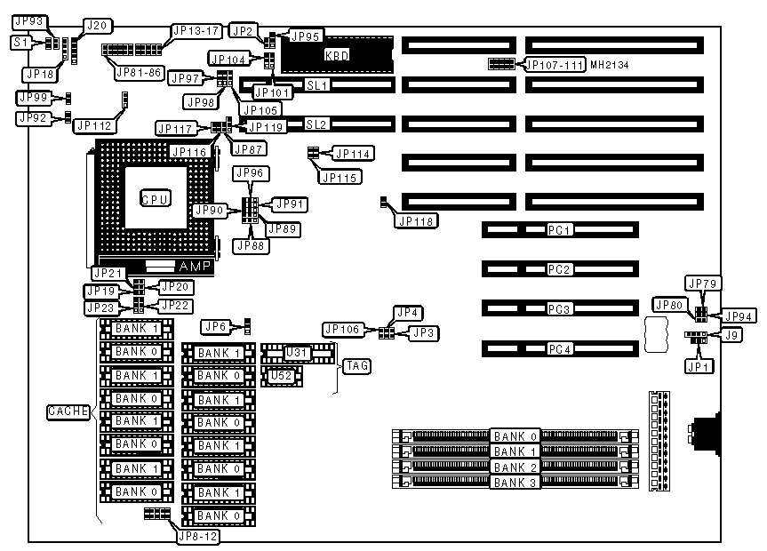 Note: Only one jumper at a time can be closed in jumper block JP107-111.