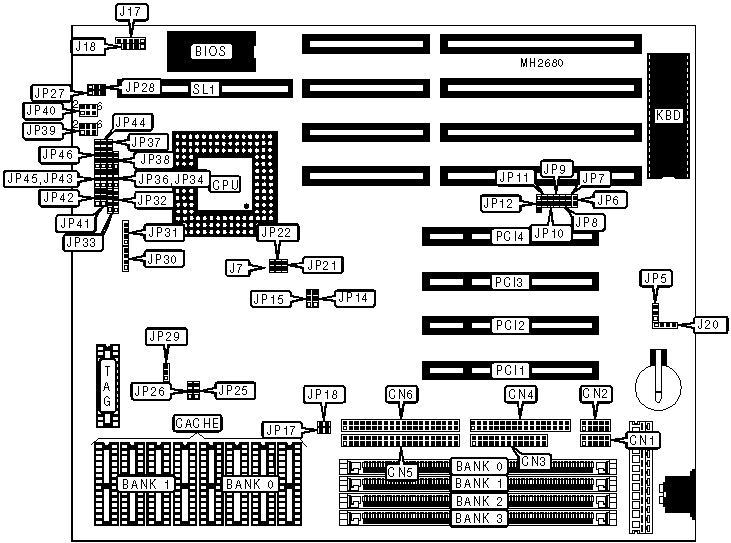 Note: The locations of JP1, JP2, JP3, JP4, JP13, JP19, and JP29 are unidentified.