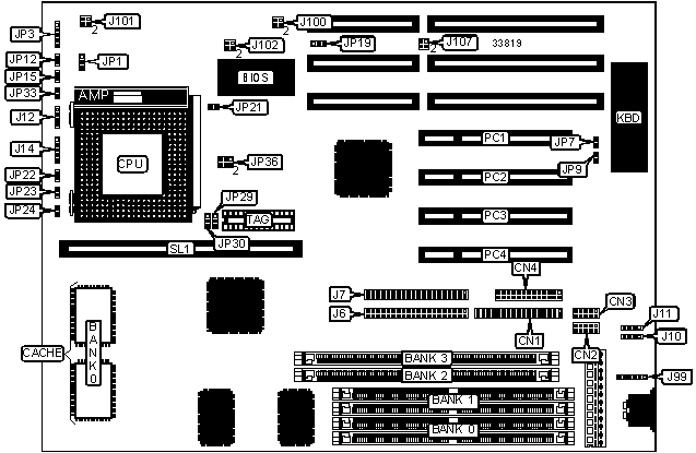 Note: Board accepts EDO memory. Banks are interchangeable. | ||