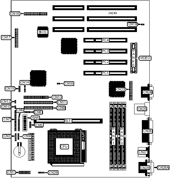 32-bit PCI slots (4), CD-ROM audio in connector, floppy drive interface, IDE interfaces (2), parallel port, PS/2 mouse port, serial ports (2), VGA feature connector, VGA port, cache slot, IR connector, USB connector, chip card reader, voice modem connector, AUX-in connector, fax/modem remote on, wavetable connector, game/MIDI/audio connector, I2C connector
