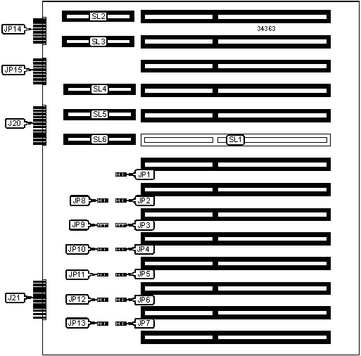 Auxiliary bus slots (6), CPU slot, floppy drive interface, IDE interface, parallel port, PS/2 mouse port, serial ports (2)