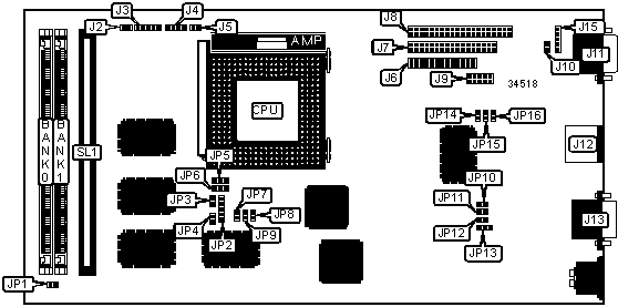 Note: Board accepts EDO memory. Board also accepts x 32 SIMMs. | ||