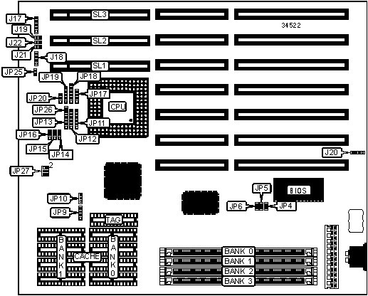 Note: Board also accepts x 32 SIMMs. Do not use any other combination of SIMM configuration. | ||||