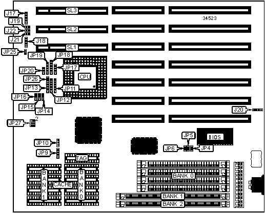 Note: Board also accepts x 32 SIMMs. Do not use any other combination of SIMM configuration. | |||