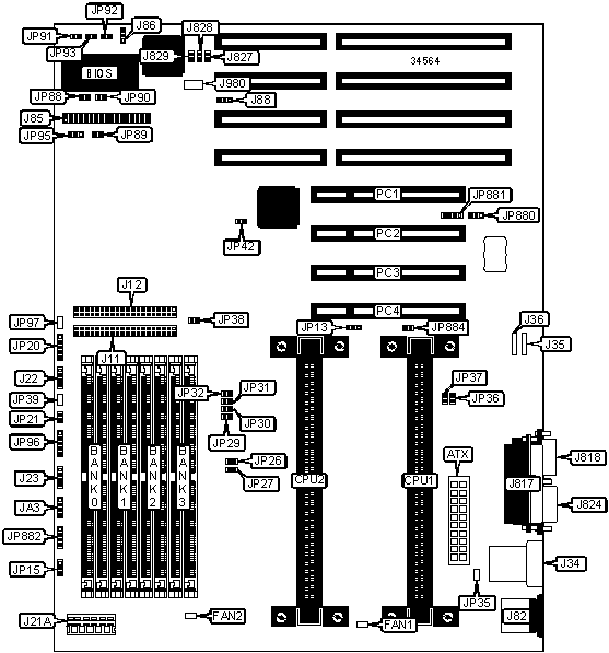| CMOS memory clear | JP880 | Pins 2 & 3 closed | |