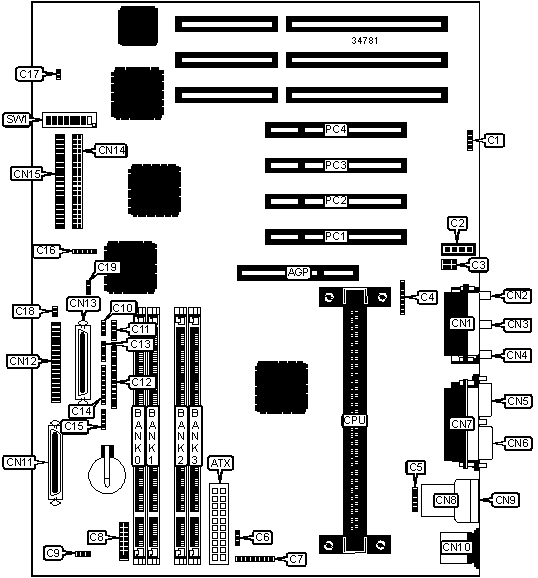 | ATX power connector | ATX | Intrusion connector | C19 |