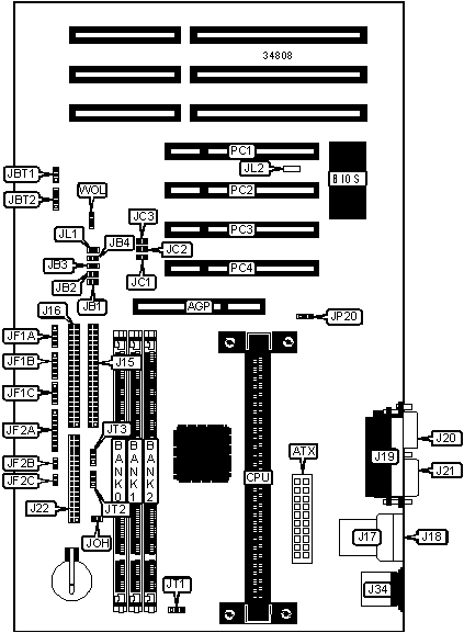 | Floppy drive interface | J22 | Chassis fan power | JT3 |