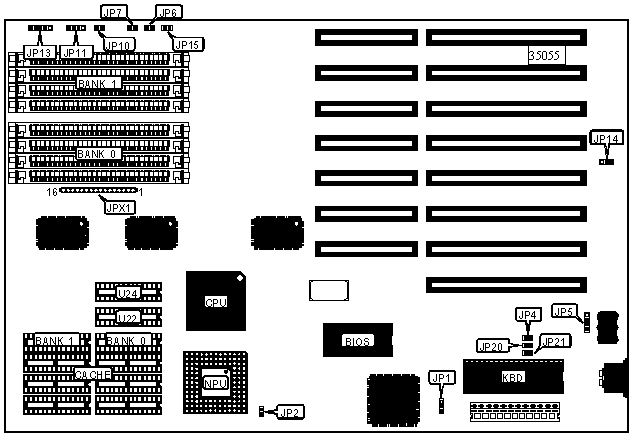 | CMOS memory clear | JP1 | pins 2 & 3 closed | |