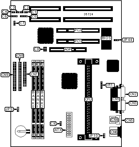 | AGP slot | AGP | Serial port 2 | CN2 |