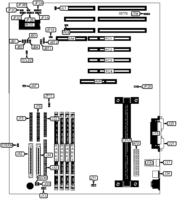 | Floppy drive interface | J22 | Chassis fan power | JT3 |