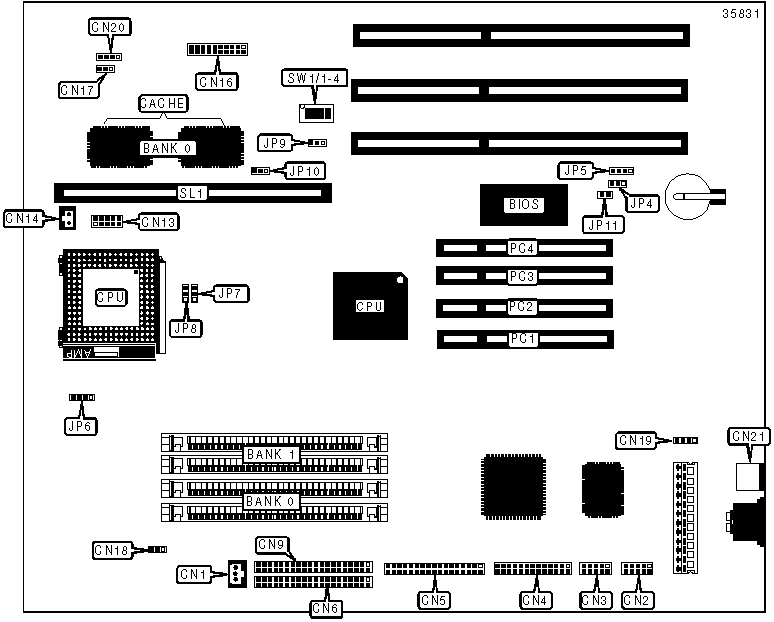 32-bit ISA slots (3), 32-bit PCI slots (4), bus mouse port, PS/2 keyboard port, serial ports (2), parallel port |