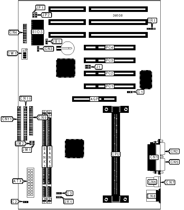 | AGP slot | AGP | Green PC LED | CN4/pins 10 & 13 |