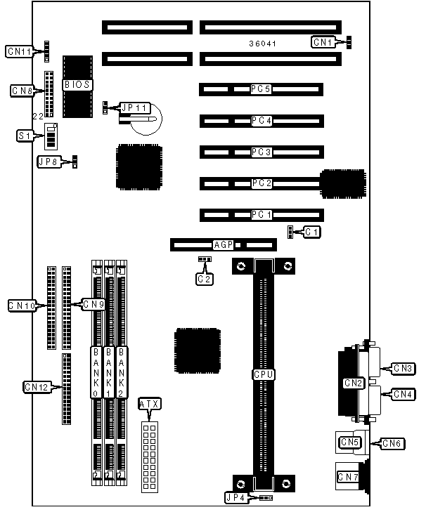 | Parallel port | CN2 | Soft off power supply | CN8/pins 11 & 12 |