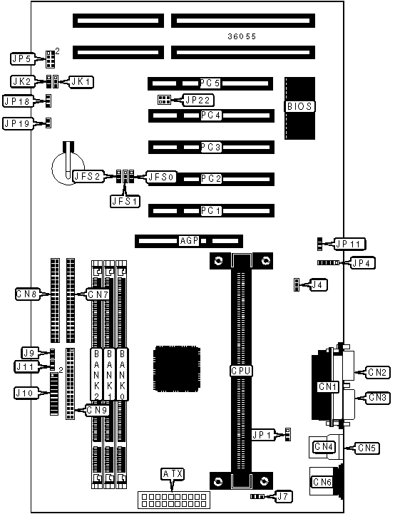 | DIMM clock select AGP CLK | JK2 | Pins 1 & 2 closed | |