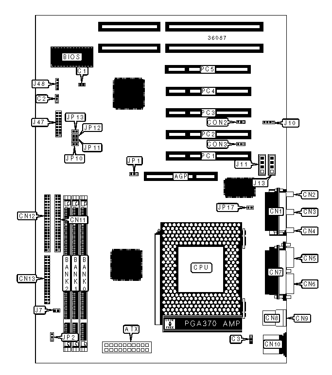 | USB connector 1 | CN8 | 32-bit PCI slots | PC1 - PC5 |