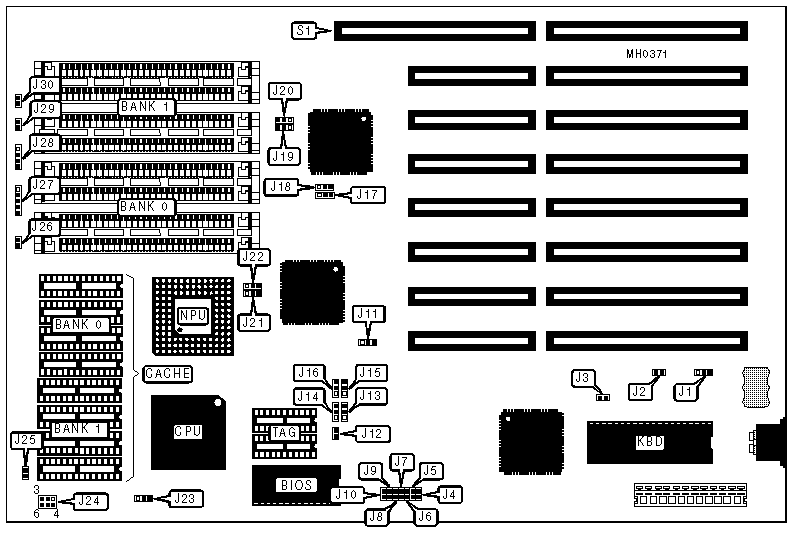 | Power LED & keylock | J27 | 32-bit external memory card | S1 |