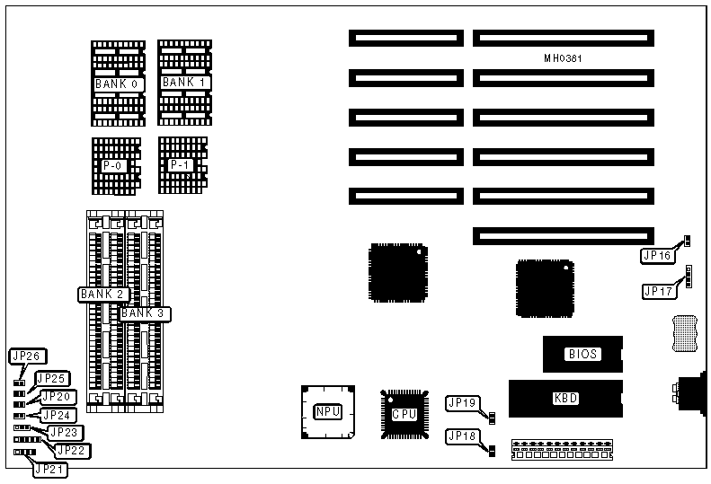| Power LED & keylock | JP22 | Reset switch | JP26 |