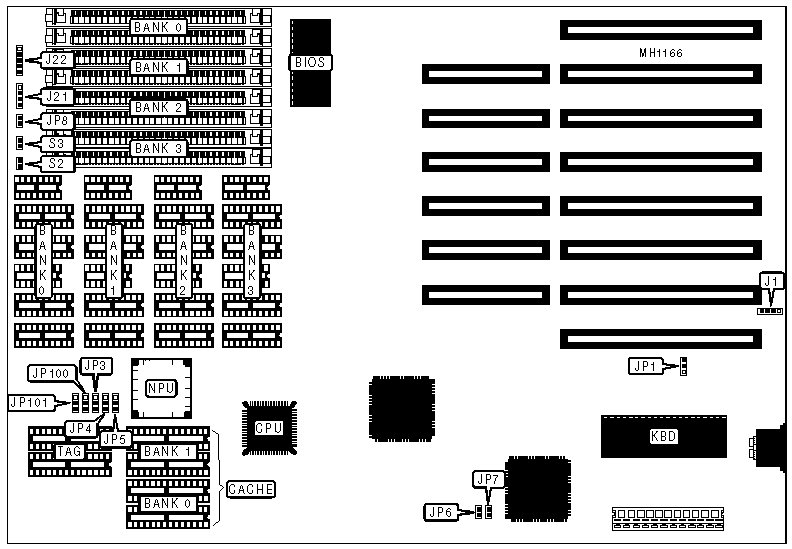 | CMOS memory clear | JP1 | pins 1 & 2 closed | |