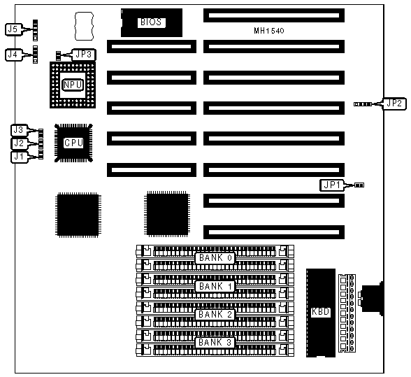 | Note:When using 44256 or 4464 chips, insert the chips into the dual-size sockets. | ||||||||