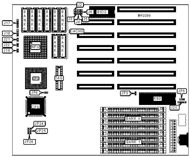 | CMOS memory clear | JP5 | pins 2 & 3 closed | |