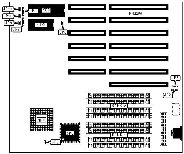 | CMOS memory clear | JP3 | pins 2 & 3 closed | |