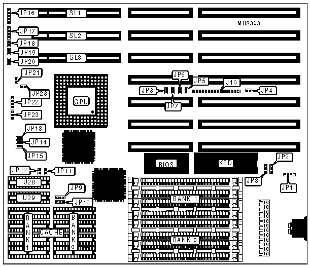Note: Using 80486DX4, CPU power board (optional) must be in J10.
