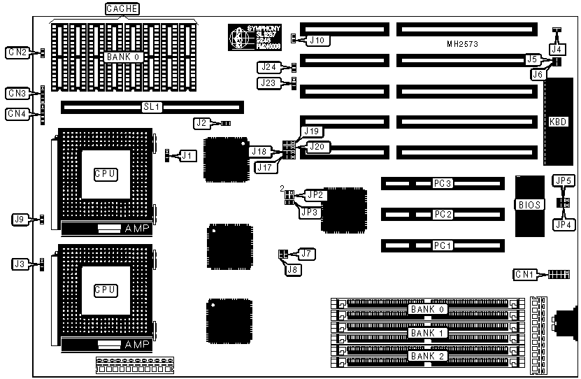 External cache card, 32-bit PCI slots (3), green PC connector, PS/2 mouse connector |