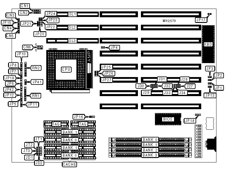 Note: The location of jumpers JP9, JP28, JP29, JP30 & JP31 are unidentified. | |||