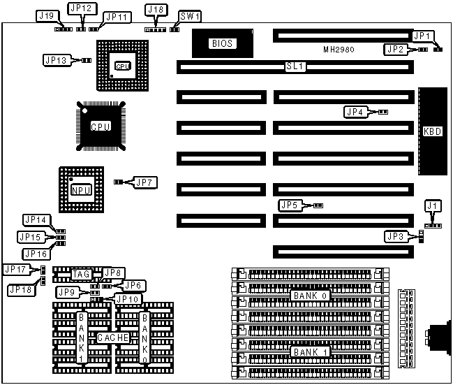 | Power LED & keylock | J18 | 32-bit VESA local bus slot | SL1 |