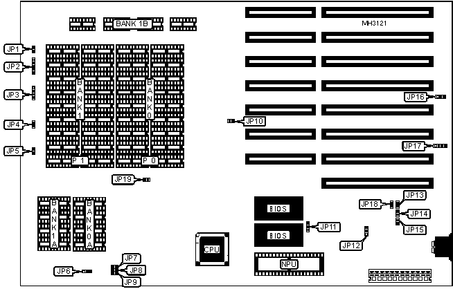 Note: JP19 is an optional jumper and may not be present on all boards. The settings for JP16 are unidentified.