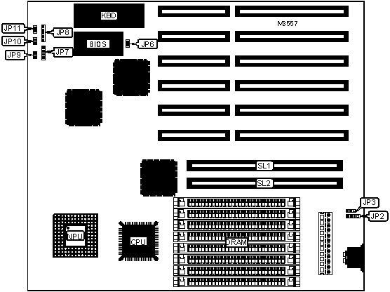| CMOS memory clear | JP3 | Pins 2 & 3 closed | |